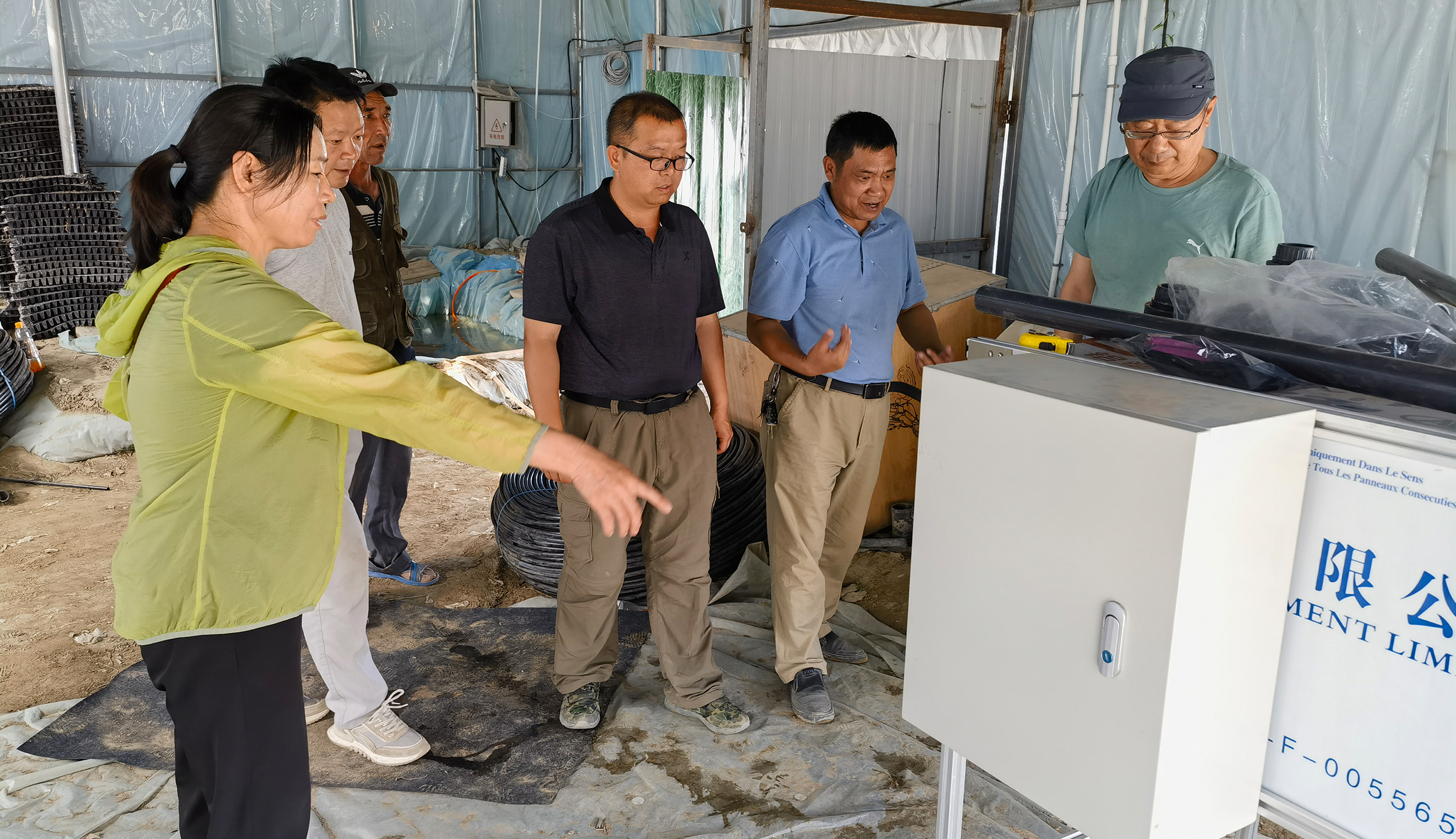 團(tuán)隊(duì)成員為種植戶安裝沙培水肥一體化設(shè)備并進(jìn)行現(xiàn)場(chǎng)操作示范,就大棚沙培如何整地、起壟、鋪設(shè)無(wú)紡布、防草布、水肥管線布置等前期準(zhǔn)備工作進(jìn)行示范,并對(duì)操作中的關(guān)鍵環(huán)節(jié)和注意事項(xiàng)對(duì)示范戶展開(kāi)現(xiàn)場(chǎng)培訓(xùn)。團(tuán)隊(duì)成員還實(shí)地查看了春季移栽干椒幼苗的緩苗情況,就部分地塊幼苗發(fā)育緩慢提出了中耕促根、控制灌水和施葉面肥的建議。