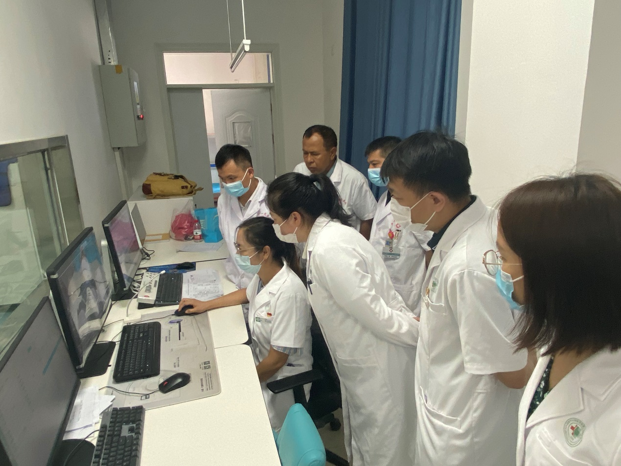 同時專家組們進入臨床、醫技科室進行教學查房、現場指導。張宏偉在一名闌尾炎術后患者的教學查房中,為大家介紹了術后快速康復技術(ERAS),為患者術后腸道功能恢復進行指導;趙丹、歐華靜、林芷伊、南燕為一名慢性支氣管炎合并支氣管擴張咯血的患者進行多學科會診診療,CT閱片、指導抗菌藥物使用、止血治療,并建議完善結核方面等相關檢查;師顥華實施了浮針、平衡針、穴位貼敷等中醫適宜技術的培訓,給出了專業的指導,中醫科的醫師都表示受益匪淺;南燕、魏瑜分別到一線指導醫技科室工作人員的診斷、操作,提出了工作中的改進建議。