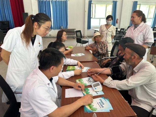團隊成員還為鄉親們開展了腎病、中醫治療、呼吸等科普知識講座3場,并開展了義診活動。專家們耐心地為鄉親們解答疾病的預防和日常保健常識,耐心細致講解科普知識,為群眾進行免費測量血壓,指導合理用藥,并對常見的慢性病、多發病的預防和治療提供專業的指導,倡導文明健康生活方式。專家為患者開具處方,在五十一團醫院的助力下可領取免費藥品,義診活動受到了社區工作人員及鄉親們的一致好評。