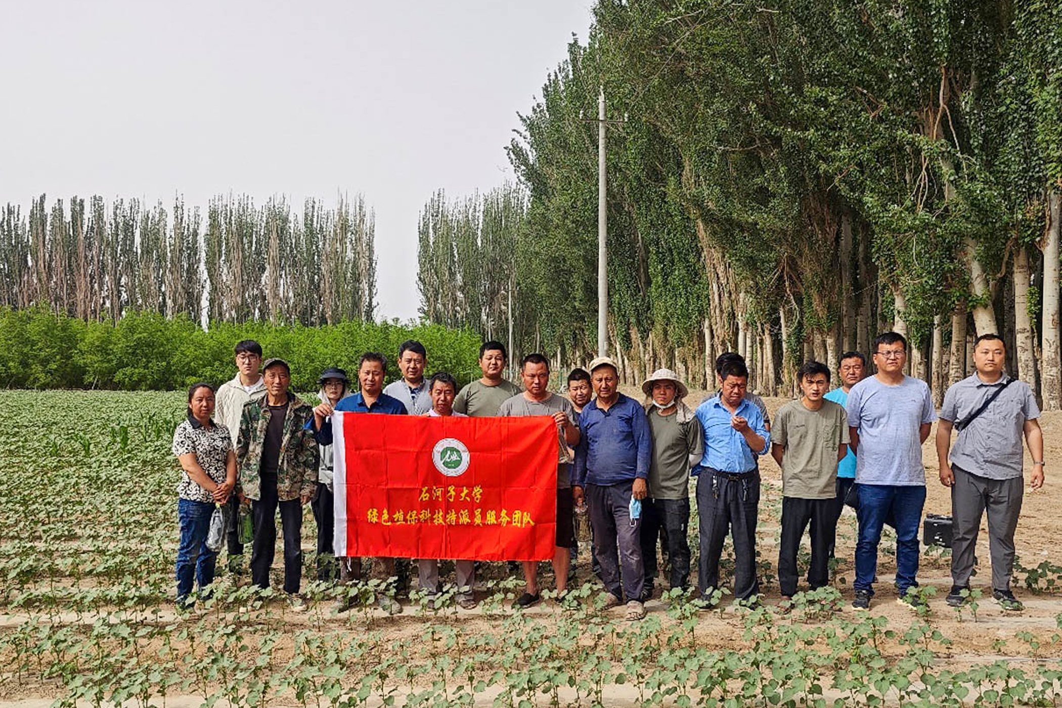 夏季是農(nóng)作物生長的關(guān)鍵時期,也是各類病蟲害發(fā)生的高峰期,為推廣普及農(nóng)作物病蟲害綠色防控技術(shù),提升廣大職工群眾防控能力和作業(yè)水平,保障農(nóng)作物的安全生產(chǎn),近日,農(nóng)學(xué)院綠色植??萍继嘏蓡T服務(wù)團(tuán)隊蘇杰副教授和蔡志平副教授聯(lián)合第三師農(nóng)業(yè)科學(xué)研究所相關(guān)專家,赴第三師53團(tuán)和44團(tuán)開展農(nóng)作物病蟲害綠色防控科技服務(wù)。