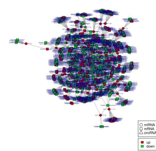圖3:布魯氏菌介導的宿主miRNA-circRNA-mRNA互作網絡