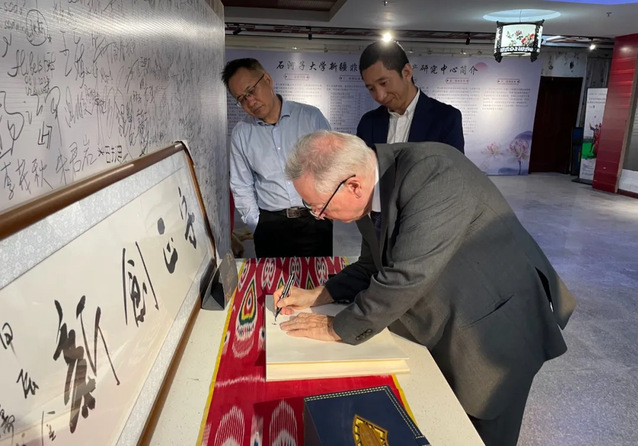 鮑勃·克萊恩對石河子大學的科研實力和師資力量給予了高度評價,并簡要介紹了英國哈德斯菲爾德大學的創辦歷程及教育理念。他表示,將高度重視此次與石河子大學的合作,期待雙方能在國際專業認證、國際獎項申報、國際學術期刊合作等方面展開全方位、深層次的交流與合作。